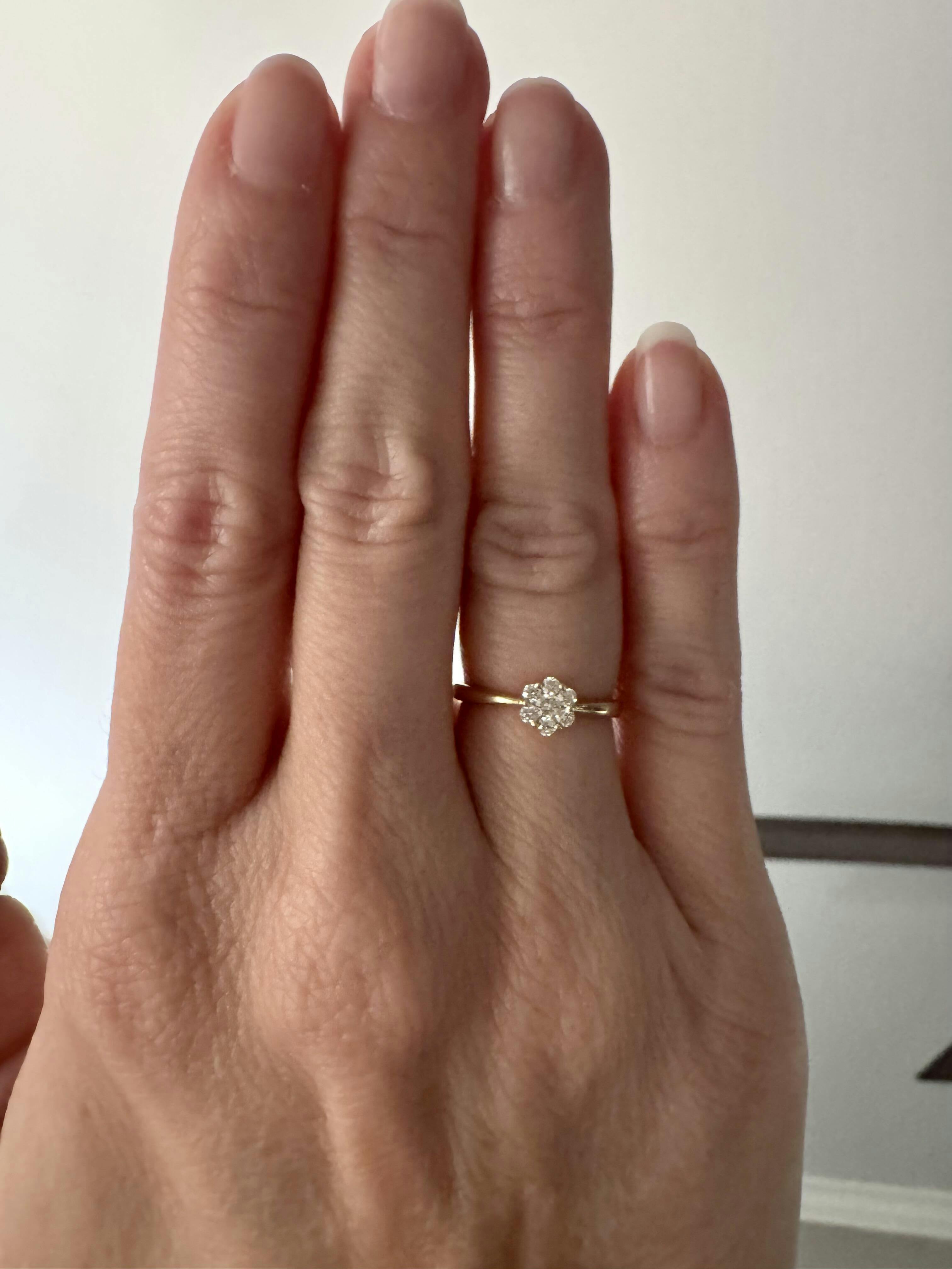 The ring has become my favorite accessory. The diamonds have a subtle brilliance, and the yellow gold band is just lovely. I wear it to family gatherings and get so many compliments. A fantastic buy!